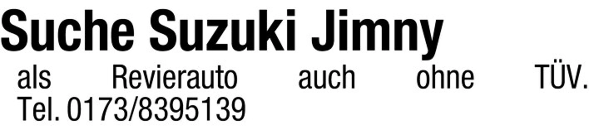 Suche Suzuki Jimny als Revierauto auch ohne TV.Tel. 0173/8395139