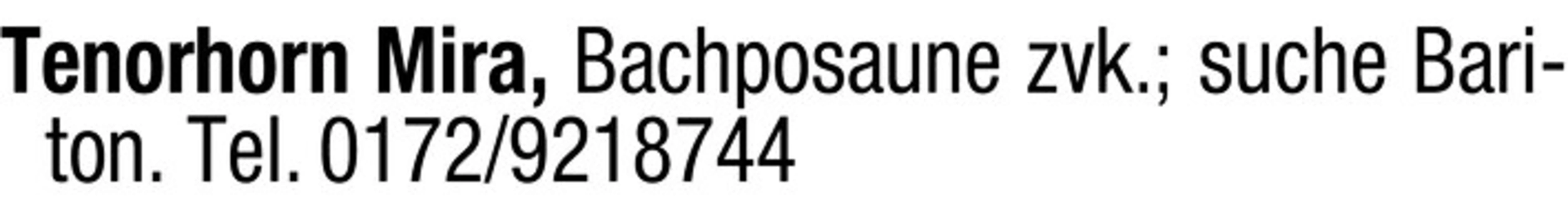 Tenorhorn Mira, Bachposaune zvk.; suche Bariton. Tel. 0172/9218744