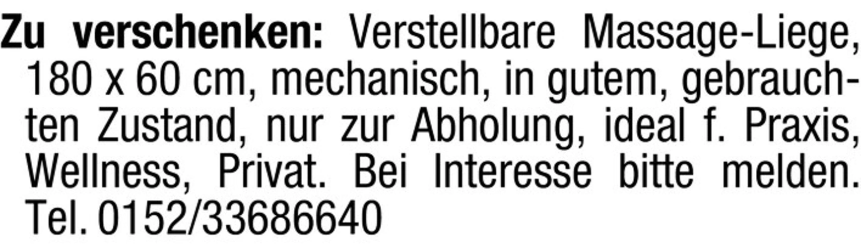 Nur zur Abholung, ideal für Praxis, Wellness, Privat.