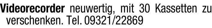 Videorecorder neuwertig, mit 30 Kassetten zu verschenken.