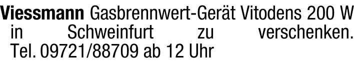 Viessmann Gasbrennwert-Gerät Vitodens 200 W in Schweinfurt zu verschenken.