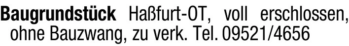 Baugrundstück Haßfurt-OT, voll erschlossen, ohne Bauzwang, zu verkaufen.