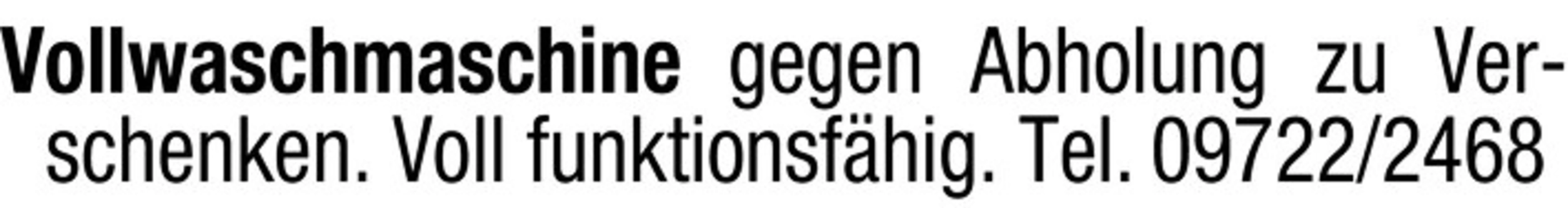 Vollwaschmaschine gegen Abholung zu Verschenken.