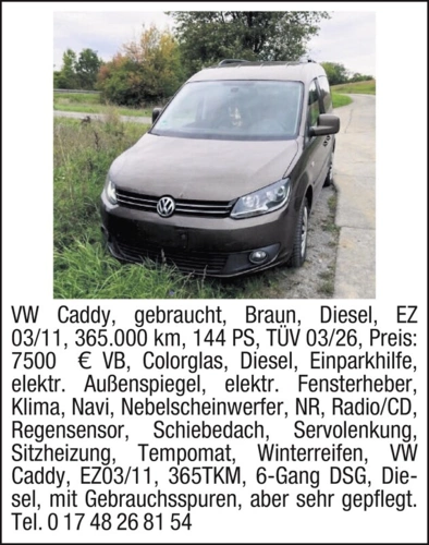 VW Caddy, EZ 03/2011, 365 TKM, 6-Gang DSG, Diesel, mit Gebrauchsspuren, aber sehr gepflegt.
