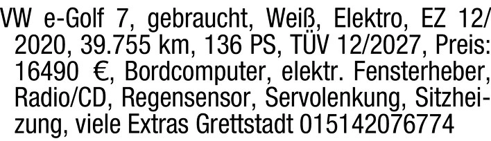 VW e-Golf 7 Elektro 2020, 39.755 km, 16.490