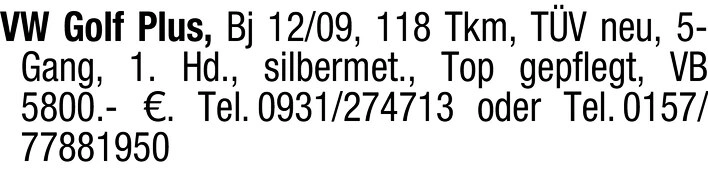 VW Golf Plus 2009, 118.000 km, Silbermetallic