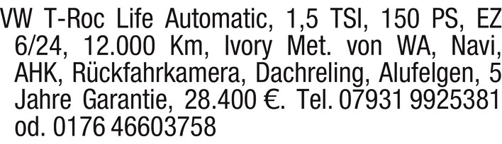 VW T-Roc Life Automatic 150 PS, 12.000 km, 5 Jahre Garantie