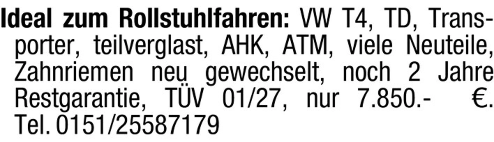 VW T4 Transporter für Rollstuhlfahrer geeignet