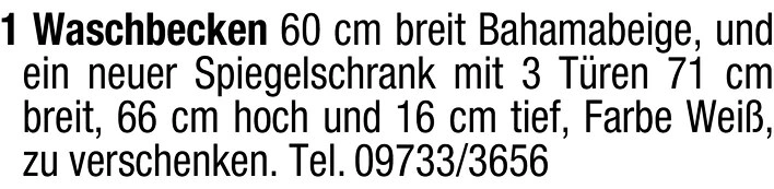 Waschbecken und Spiegelschrank gratis abzugeben