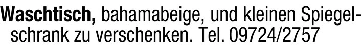 Waschtisch, bahamabeige, und kleinen Spiegelschrank zu verschenken.