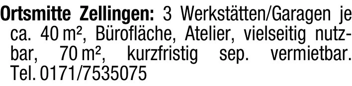 • 3 Werkstätten/Garagen à ca. 40 m²