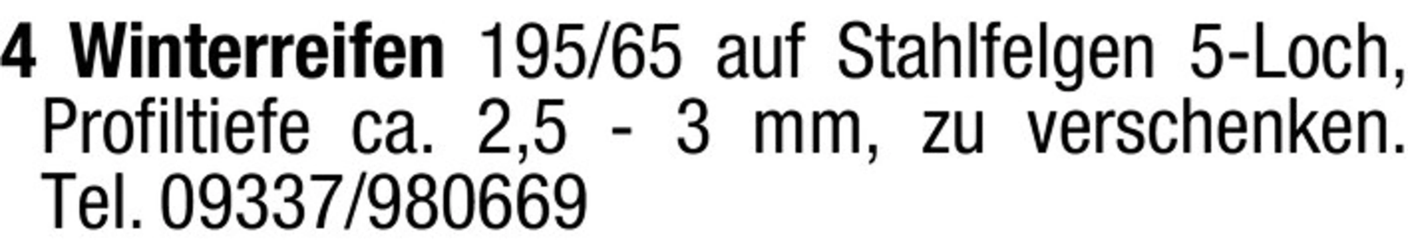 4 Winterreifen 195/65 auf Stahlfelgen 5-Loch, Profiltiefe ca. 2,5 - 3 mm.