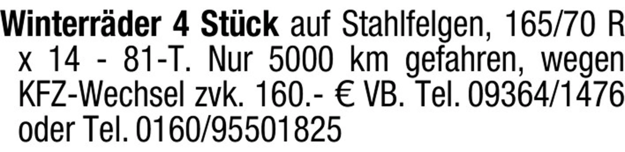 Winterreifen auf Stahlfelgen, wenig gefahren