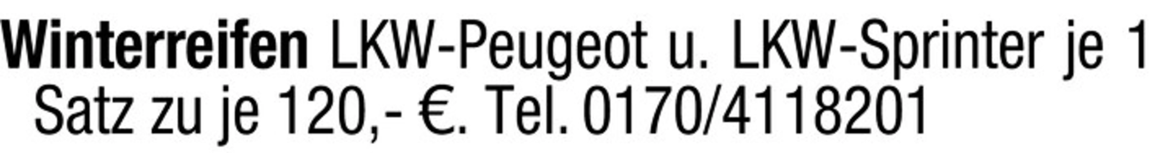 Winterreifen LKW-Peugeot u. LKW-Sprinter je 1 Satz zu je 120,- . Tel. 0170/4118201