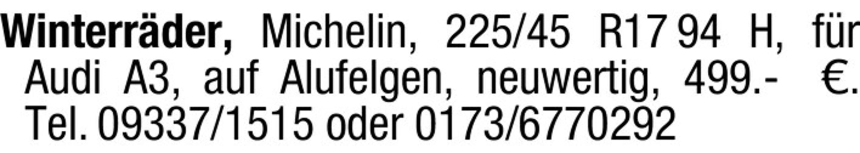 für Audi A3, auf Alufelgen, neuwertig, 499.-