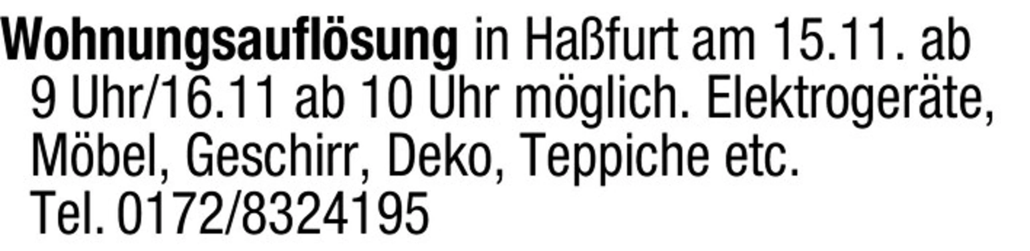 Wohnungsauflösung in Haßfurt am 15.11. und 16.11.