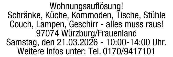 Wohnungsauflösung Würzburg: Möbel, Küche, Geschirr