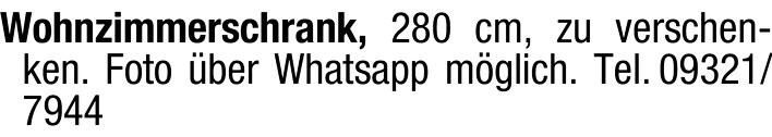 Wohnzimmerschrank, 280 cm, zu verschenken.
