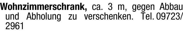 Wohnzimmerschrank 3m Breite kostenlos abzugeben