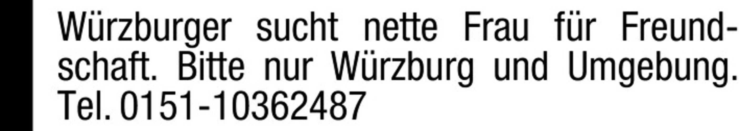 Wrzburger sucht nette Frau fr Freundschaft. Bitte nur Wrzburg und Umgebung. Tel. 0151-10362487
