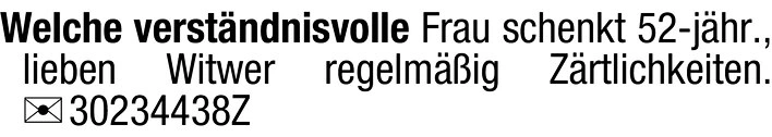 Welche verständnisvolle Frau schenkt 52-jhr., lieben Witwer regelmäßig Zärtlichkeiten.