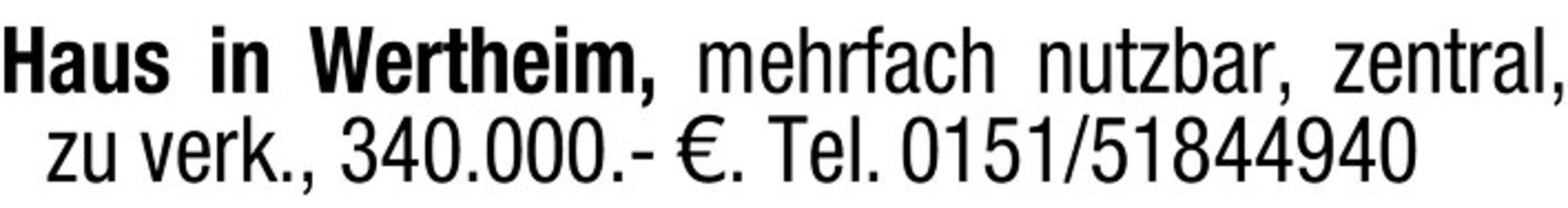 Haus in Wertheim, mehrfach nutzbar, zentral, zu verk., 340.000.- . Tel. 0151/51844940