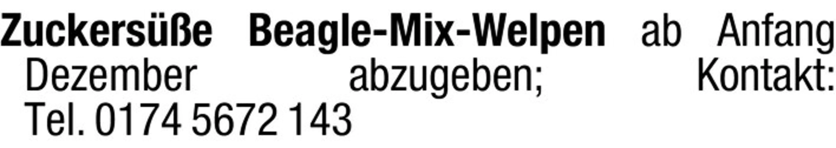 Zuckerse Beagle-Mix-Welpen ab Anfang Dezember abzugeben; Kontakt: Tel. 0174 5672 143