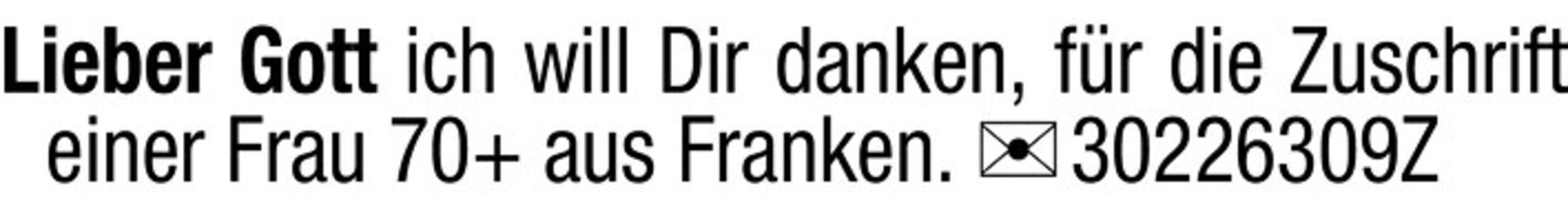Lieber Gott ich will Dir danken, für die Zuschrift einer Frau 70 aus Franken. Chiffre 30226309