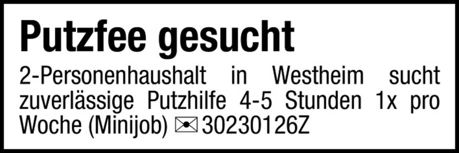 2-Personenhaushalt in Westheim sucht zuverlässige Putzhilfe