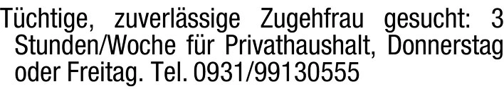 Tüchtige, zuverlässige Zugehfrau gesucht: