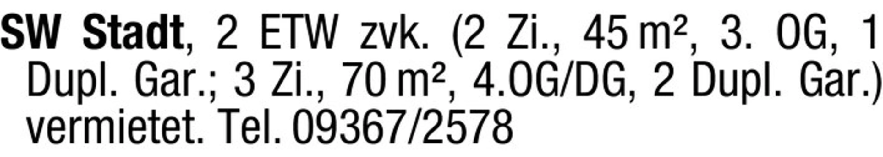 • 3 Zi., 70 m², 4. OG/DG, 2 Duplex-Garagen