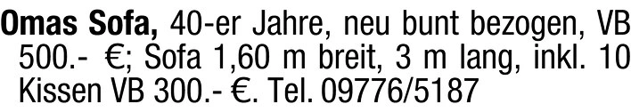 Kontakt: Tel. 09776/5187